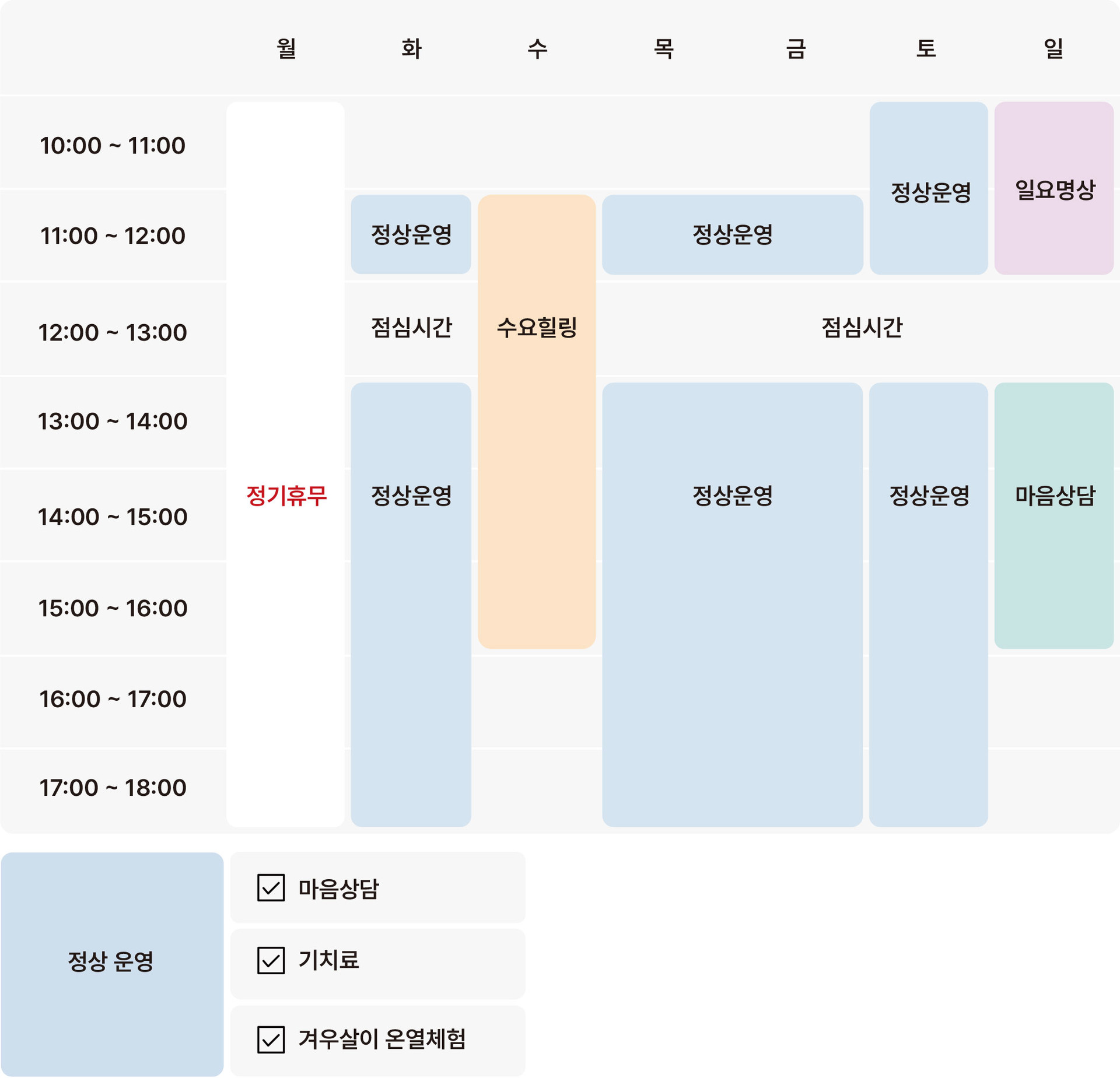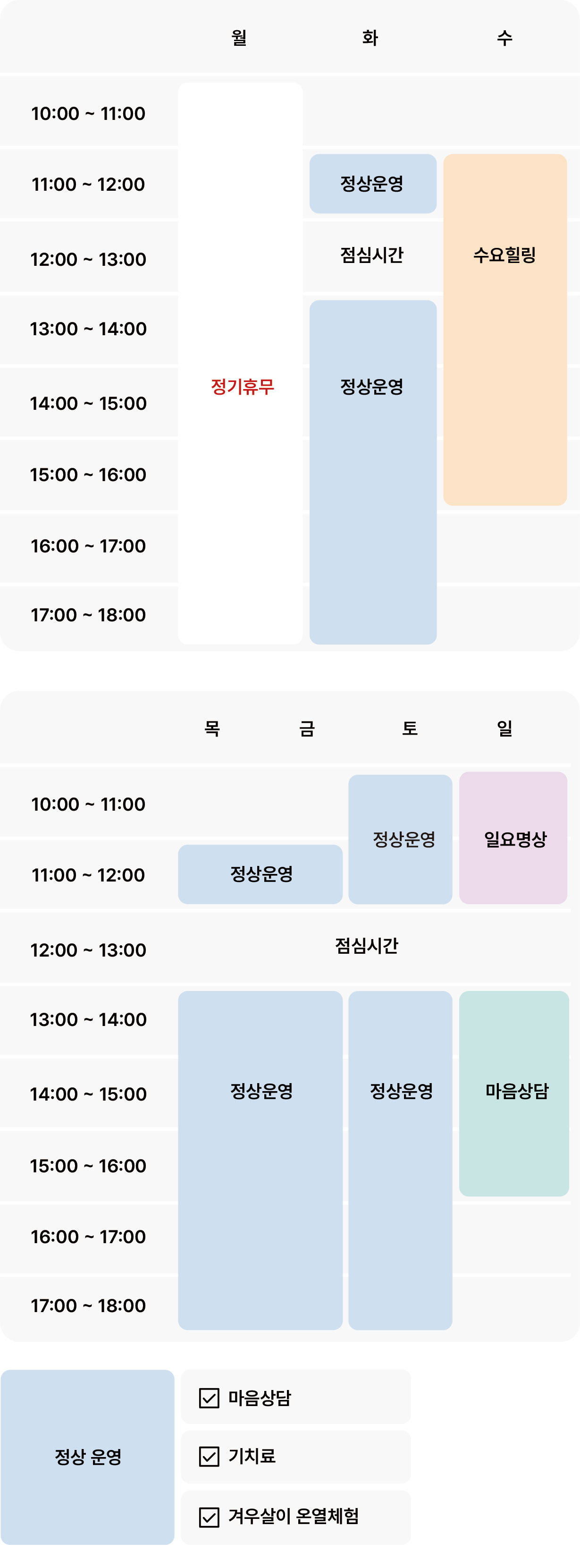 ※ 힐링 프로그램 일정은 산내음 캘린더에 매달 업데이트 됩니다.